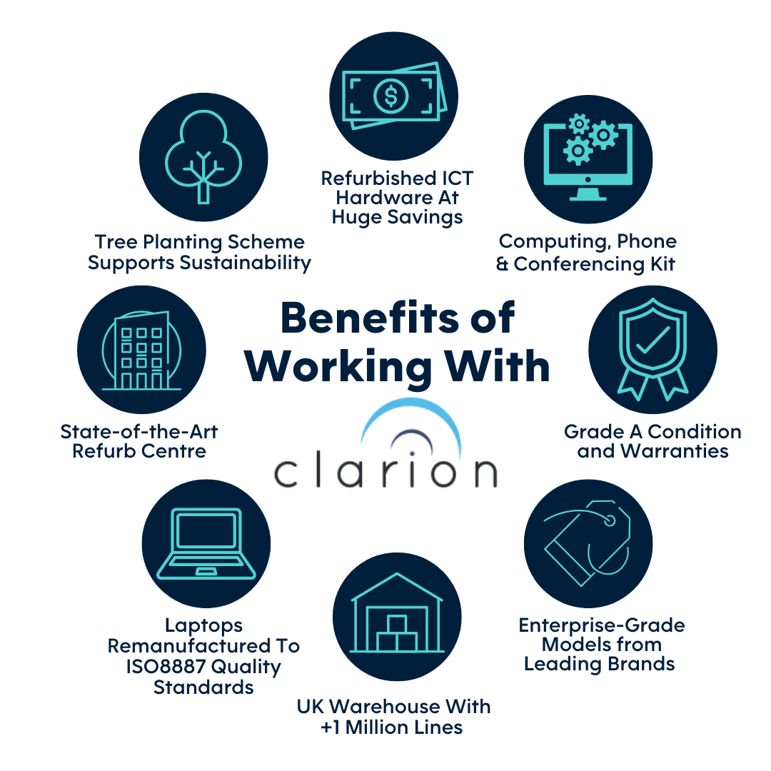 Switching to refurbished PCs and other IT equipment not only offers schools a more environmentally friendly solution to their IT procurement but also offers cost savings of up to 80%. Through Clarion’s refurbished IT program, they can deliver high quality, Grade A computers, laptops, telecoms, and conferencing hardware, with a 3-year warranty alongside the enormous cost savings when compared to buying brand new.